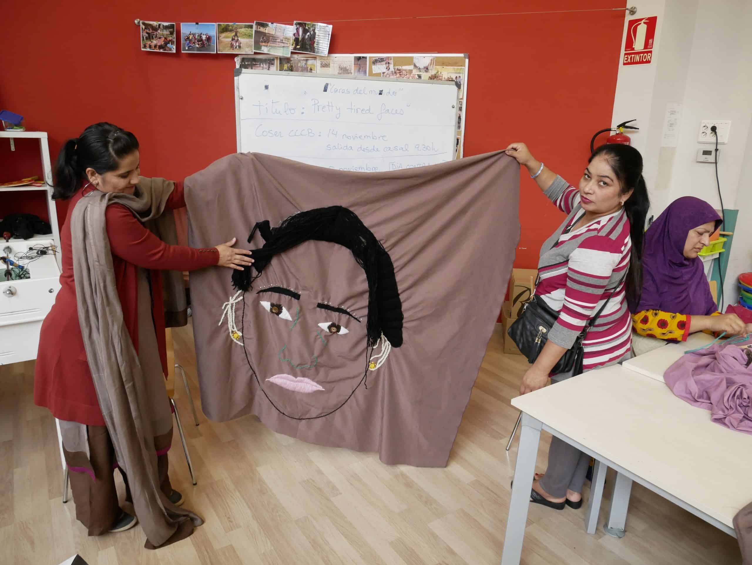 Dins del Casal Familiar, les dones que ara participaran en l’exposició Feminismes! van crear un nou espai que van anomenar ‘El hilo del Casal’, en el qual cada dijous comparteixen estones de conversa, suport mutu i autorealització personal a través de la costura: “Les dones tenim poder. Nosaltres ho demostrem amb totes les càrregues de feina i cures que arrosseguem, però ara també a través d’aquests autoretrats, de la nostra cara”, afirma Farjana Hossain, una de les participants d’’El hilo del Casal’. “Aquests retrats donen molta informació de nosaltres, perquè aquí ens ajuntem dones de molts països diferents, compartim la nostra cultura i ens dediquem temps a nosaltres mateixes”, afegeix la Mina Akkaoui.