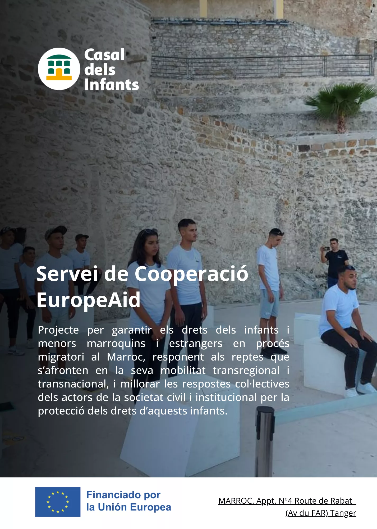 Al Casal dels Infants desenvolupem el projecte ‘Servei de Cooperació EuropeAid’, que té per objectiu garantir els drets dels infants i menors marroquins i estrangers en procés migratori al Marroc, responent als reptes que s’afronten en la seva mobilitat transregional i transnacional, i millorar les respostes col·lectives dels actors de la societat civil i institucional per la protecció dels drets d’aquests infants.