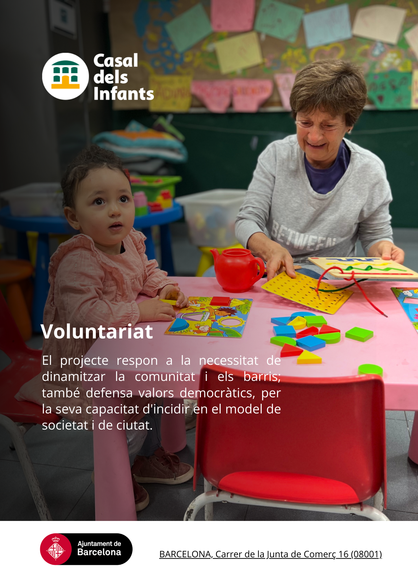 Al Casal dels Infants desenvolupem, dins de la convocatòria ordinària de subvencions per a la concessió de subvencions per a dur a terme projectes, activitats i serveis de districte i de ciutat 2024, el projecte ‘Voluntariat’.