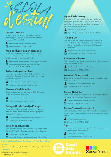 Programa de la Escola de Verano del Casal dels Infants en Llefià