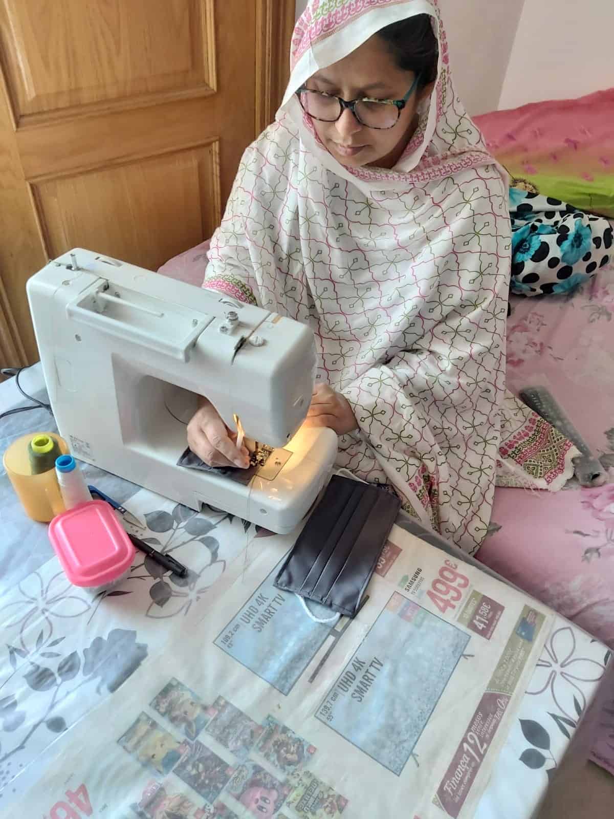 «Par mí es muy importante hacer estas mascarillas porque son una manera de dar tranquilidad quien está trabajando en los centros de salud o a cualquier otra personas que las necesita», comenta Shahanaz. «También me ha permitido estar distraída durante el confinamiento y hacer una actividad en familia, porque mi hijo Noman, que tiene 12 años, me ha ayudado a hacer las mascarillas», añade.