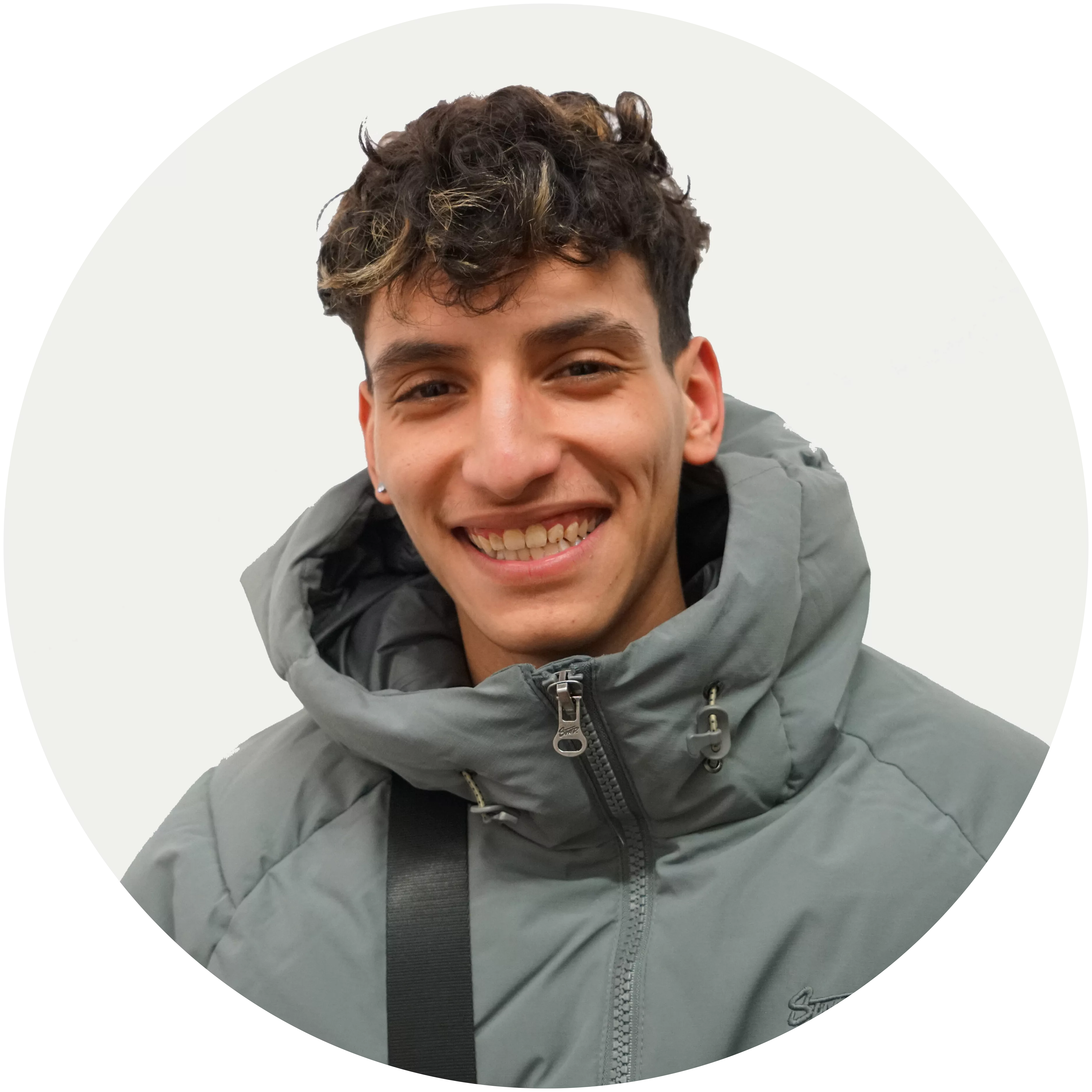 Sóc de la ciutat de Chlef, i vaig arribar a Espanya fa sis mesos. El meu talent és cantar i també m’agrada ballar. Ara faig de repartidor, i m’agradaria formar-me en comerç, en xarxes socials i en màrqueting digital.