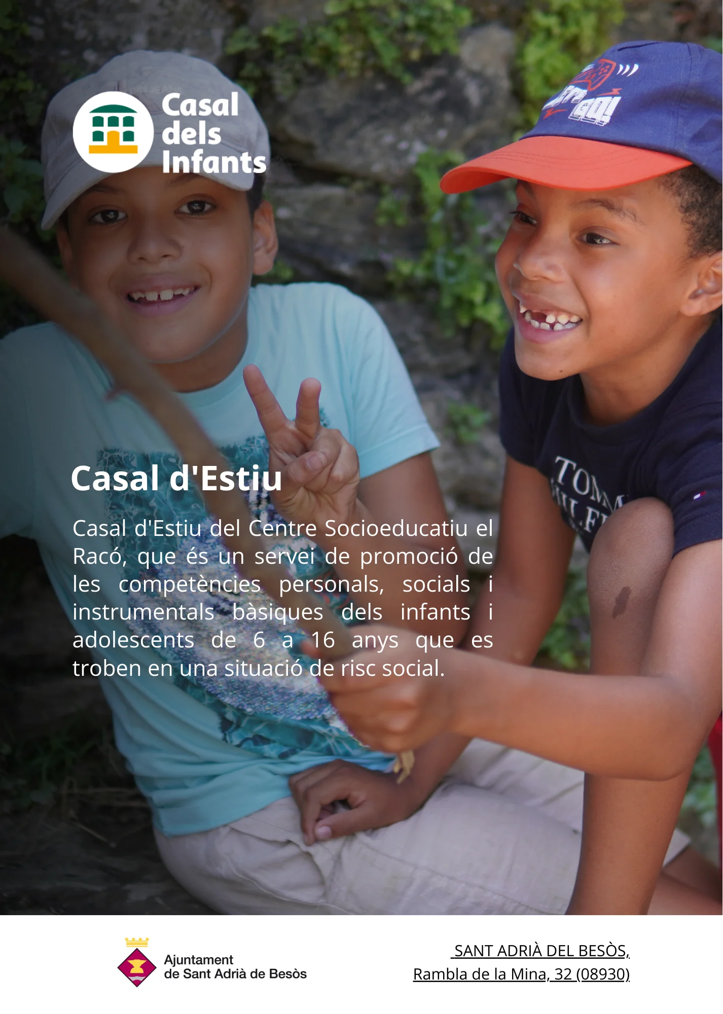 El Casal d’Estiu del Centre Socioeducatiu el Racó és un servei de promoció de les competències personals, socials i instrumentals bàsiques dels infants i adolescents de 6 a 16 anys que es troben en una situació de risc social.