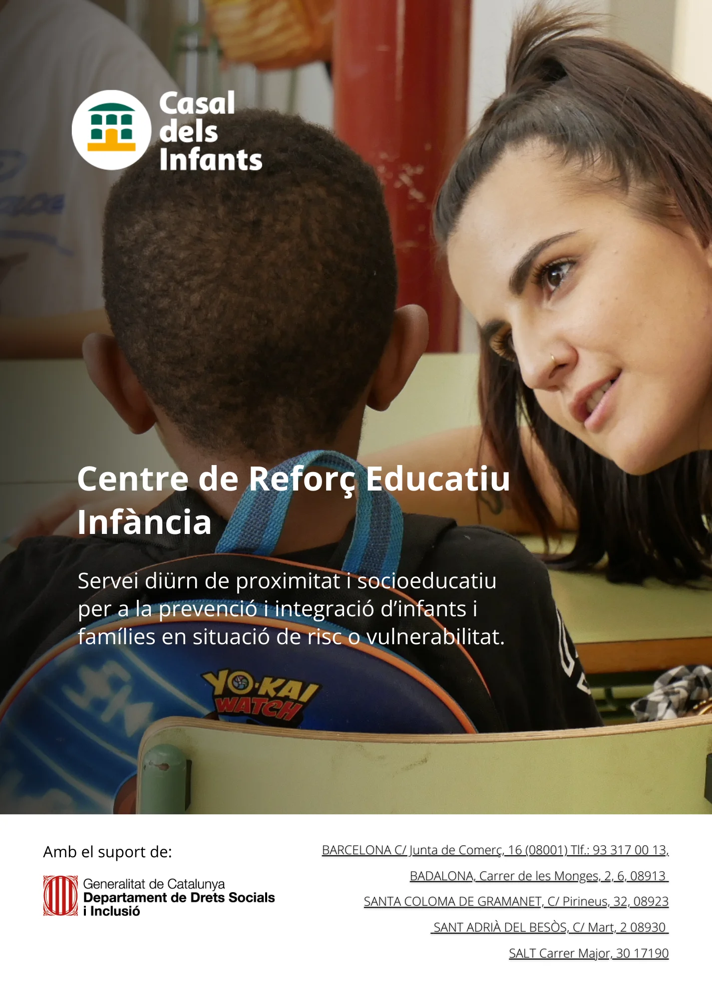 Tirem endavant el ‘Centre de Reforç Educatiu Infància’ als municipis de Barcelona; Sant Adrià de Besòs; Santa Coloma de Gramenet; Badalona, Salt i Girona.