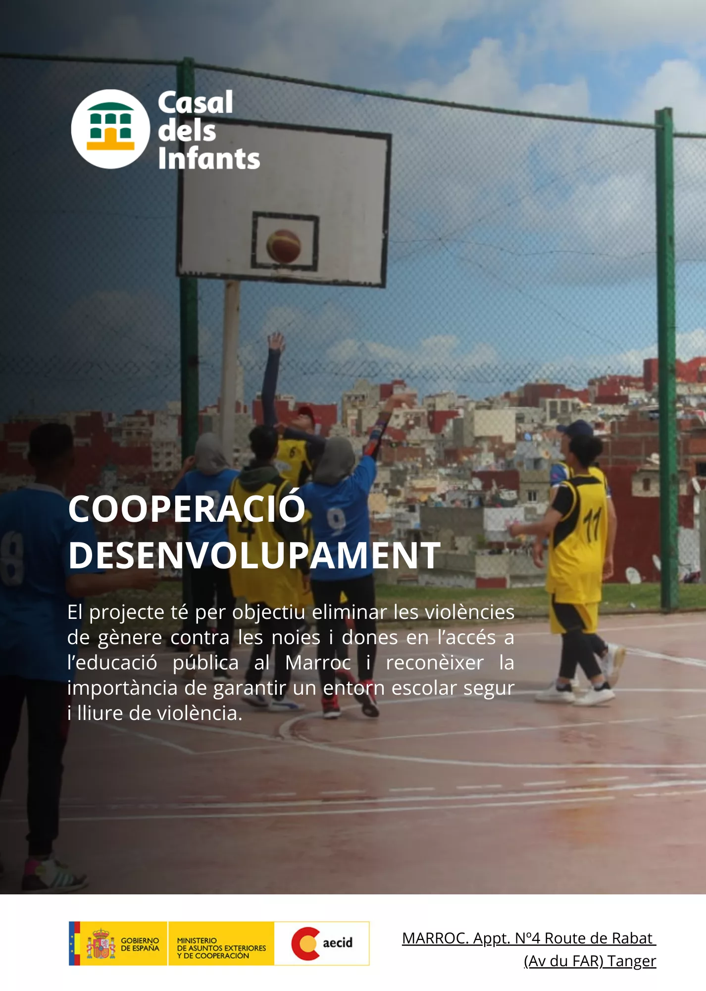Al Casal dels Infants desenvolupem, dins la convocatòria Agencia Española de Cooperación Internacional para el Desarrollo, el projecte ‘COOPERACIÓ DESENVOLUPAMENT’, que té per objectiu eliminar les violències de gènere contra les noies i dones en l’accés a l’educació pública al Marroc i reconèixer la importància de garantir un entorn escolar segur i lliure de violència per a totes les alumnes, fonamental per al seu benestar i desenvolupament.