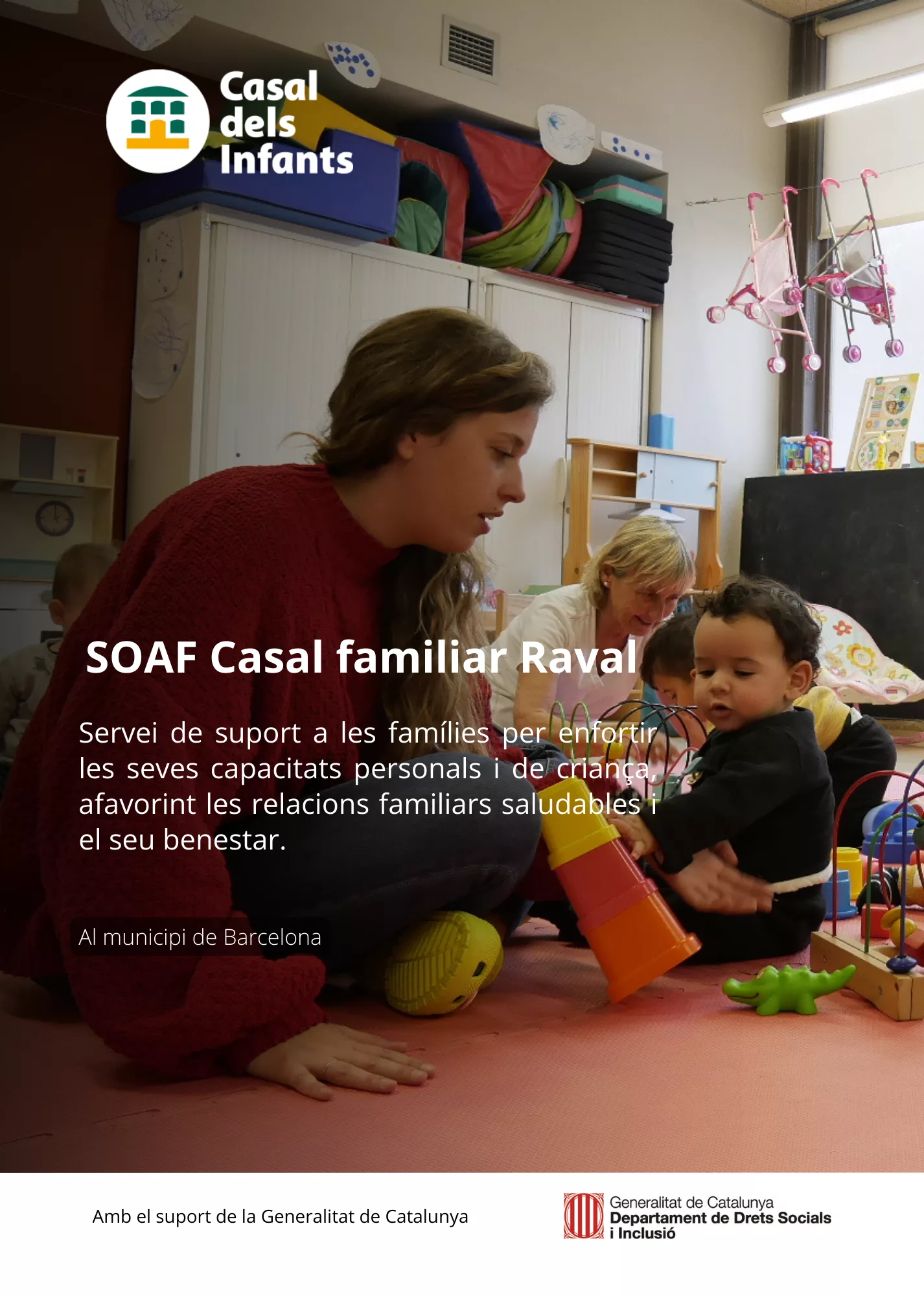 Al Casal dels Infants desenvolupem, dins la convocatòria de Subvencions a entitats de l’àmbit de polítiques socials del Departament de Drets Socials i Inclusió per als exercicis 2025 i 2026, el projecte ‘SOAF Casal Familiar Raval’, que té per objectius:
