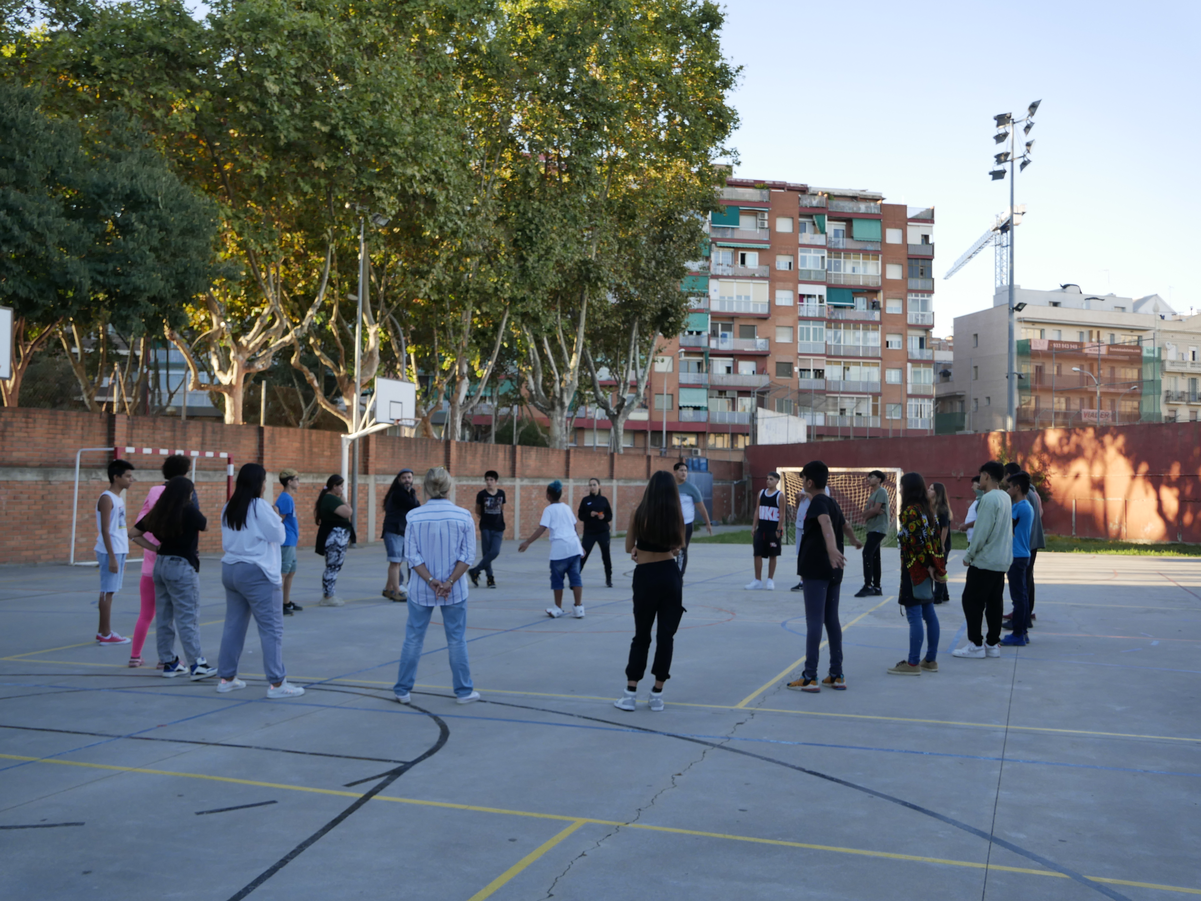 Per als nois del Centre Socioeducatiu Adolescent de Badalona, la tarda acaba al pati, amb dinàmiques de joc per activar el cos i practicar l’escolta activa. Al final, com sempre, tanquen la tarda amb una rotllana, on cada infant tria una paraula o frase que encapsuli l’estona compartida. Alegria, companyonia, “cansat però divertit”, i “molt bona tarda” són les expressions que més es repeteixen.