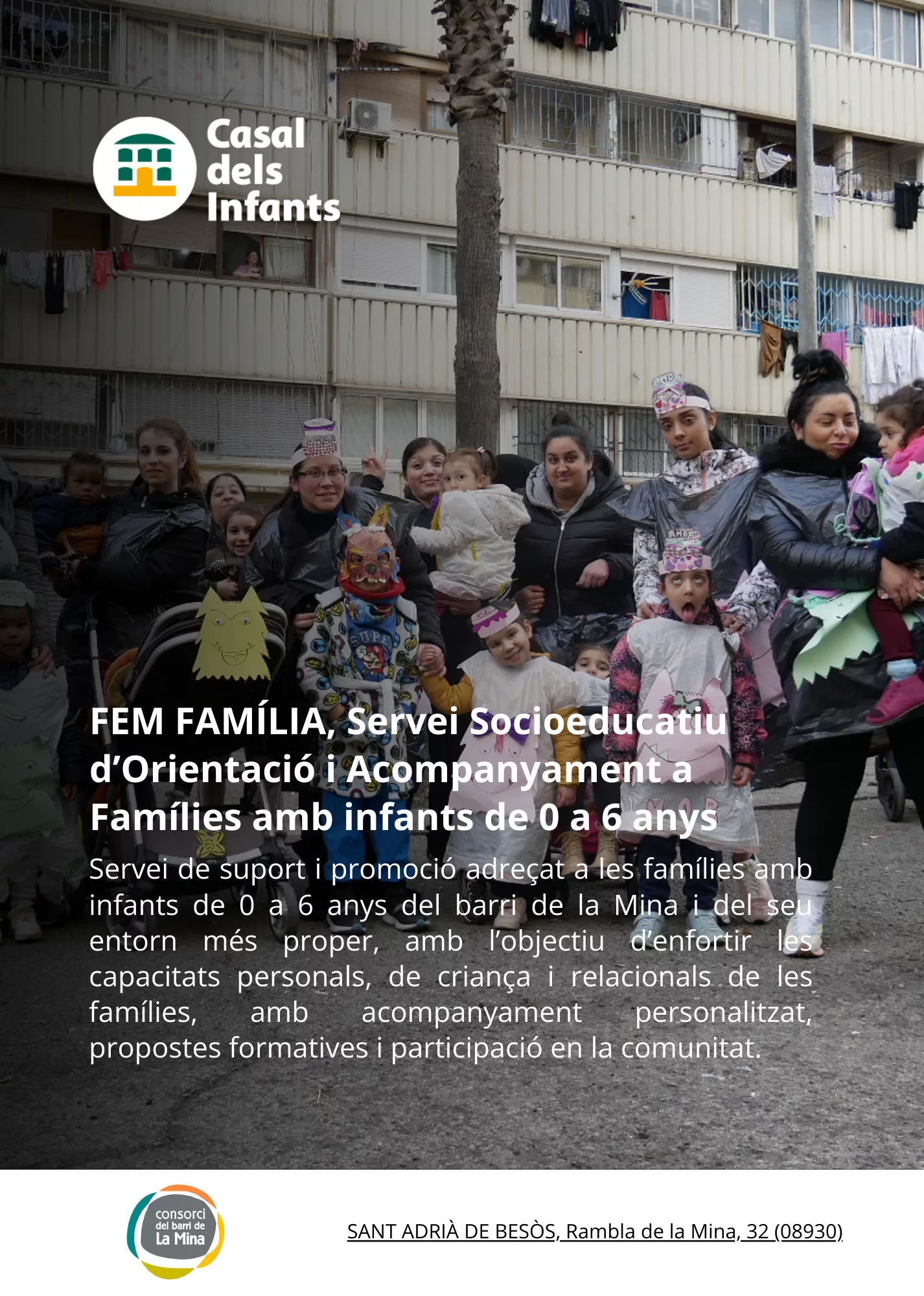 Desenvolupem ‘FEM FAMÍLIA, Servei Socioeducatiu d’Orientació i Acompanyament a Famílies amb infants de 0 a 6 anys (Educació infantil)’ al barris de la Mina, a Sant Adrià de Besós.