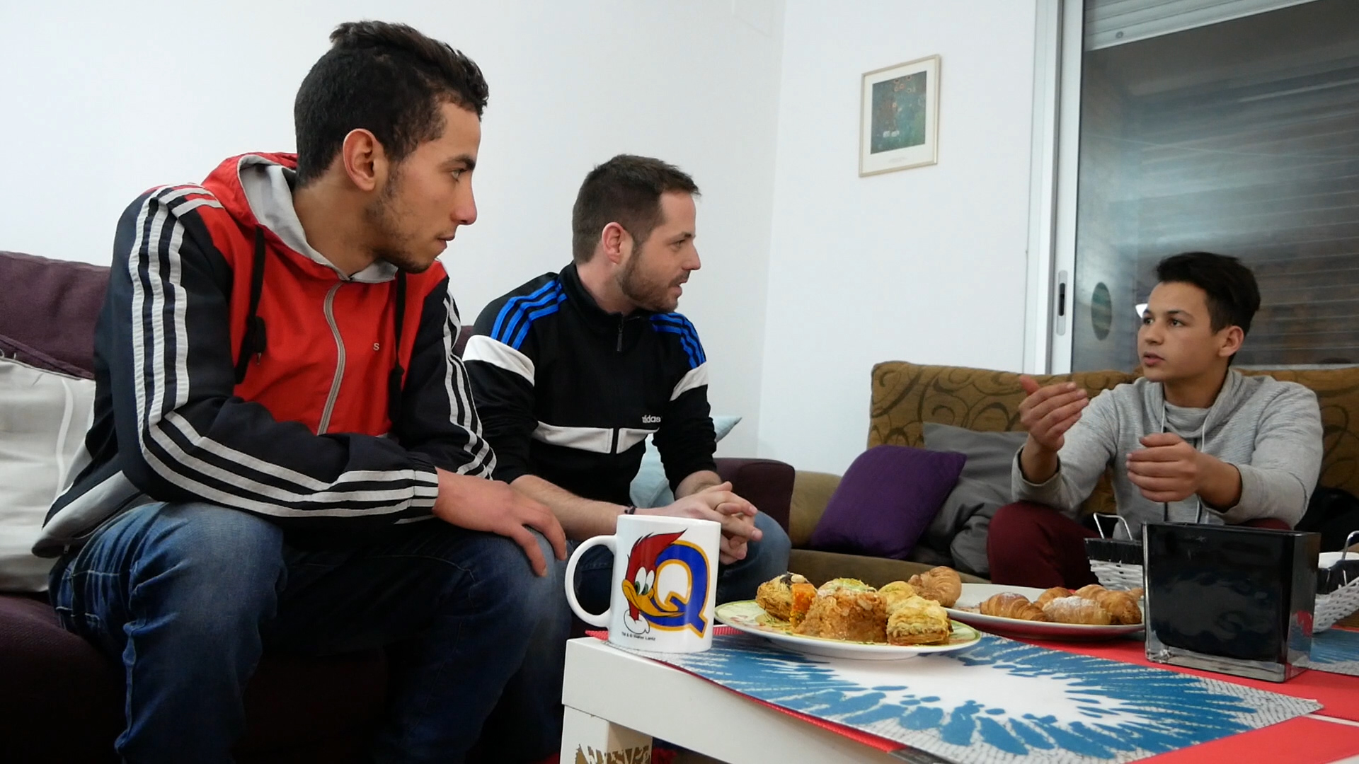 Avança una d’aquelles tardes en què les últimes fuetades del fred castiguen els carrers. En un pis de la plaça Juliana Morell, al barri del Besòs i el Maresme de Barcelona, cinc joves fan caliu preparant el berenar. La taula del menjador es va sortint de pastissets àrabs, croissants, cafè, llet… Tot està a punt quan sona el timbre i, ben abrigat amb gorro i guants, creua el marc de la porta en Fadili, el convidat esperat.