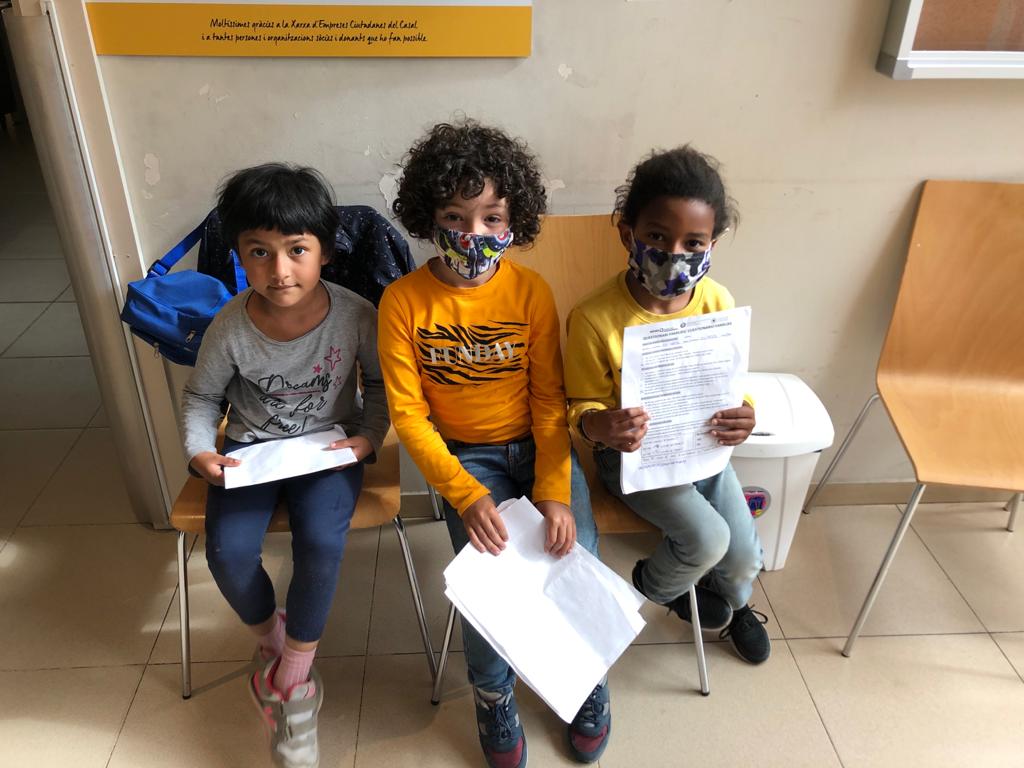 Tres infants amb els informes de la revisió d'"Et mirem als ulls"