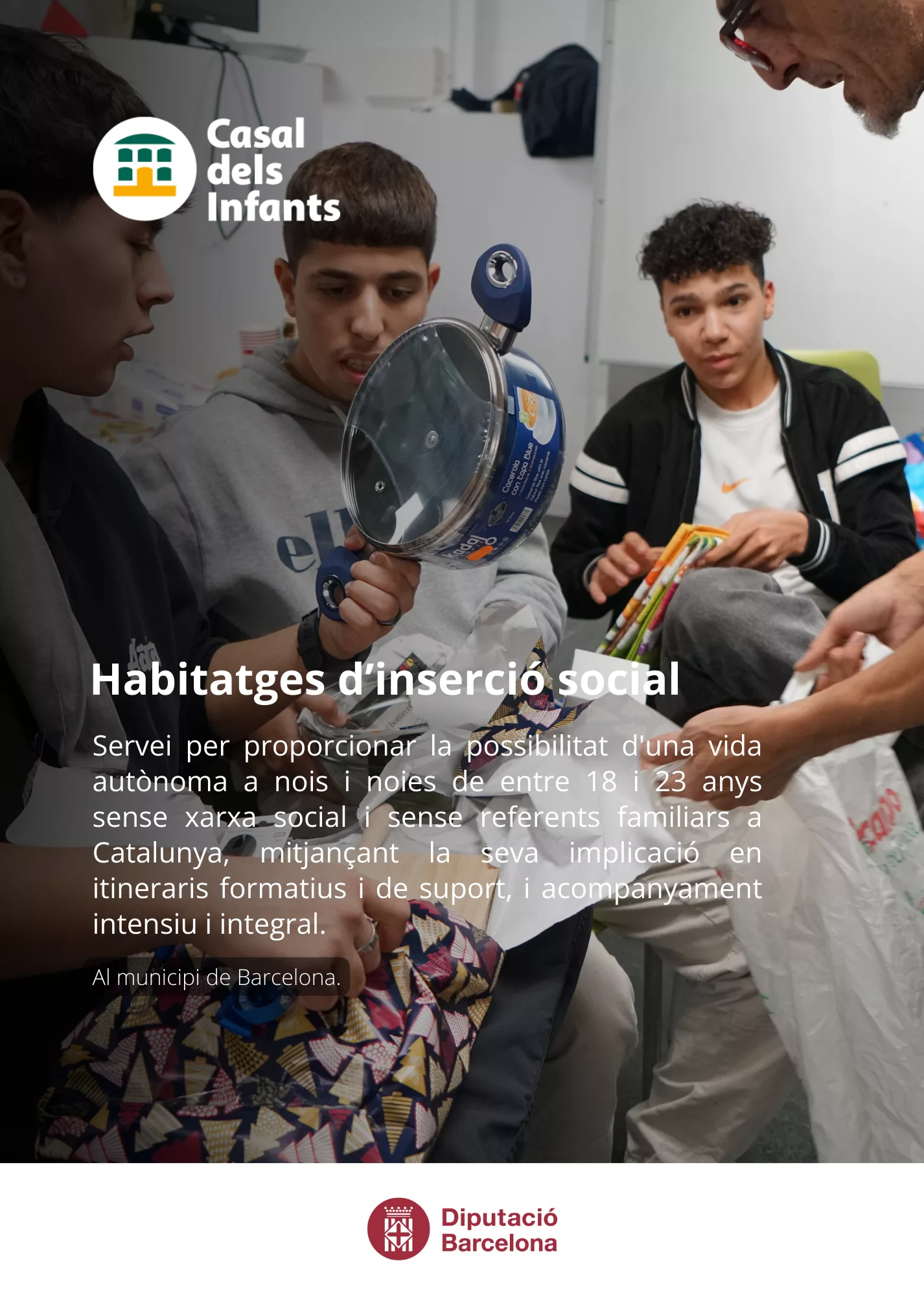 Al Casal dels Infants desenvolupem el projecte ‘Habitatges d’inserció social’, que té per objectiu proporcionar la possibilitat d’una vida autònoma a nois i noies de entre 18 i 23 anys sense xarxa social i sense referents familiars a Catalunya, mitjançant la seva implicació en itineraris formatius i de suport, i acompanyament intensiu i integral.