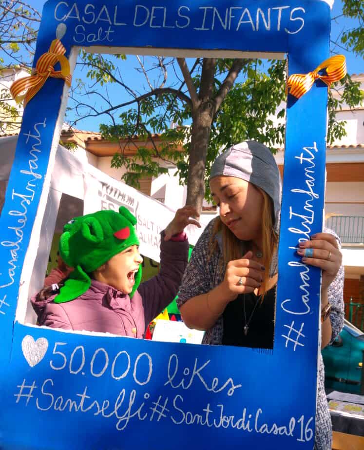 A Salt, al Gironès,els nens i nenes han estrenat paradeta de la diada al davant del nou local. Al vell mig del carrer Major de la localitat gironina, els saltencs i saltenques han pogut apropar-se als infants i joves del Casal mentre s’han fet “selfies” i altres fotos amb el “photocall” temàtic de Sant Jordi. “Ens hem disfressat de dracs, de princeses i de cavallers!”, comentava en Ferran López, director del Casal de Salt, “va ser una activitat diferent que va engrescar molt els veïns i veïnes.”