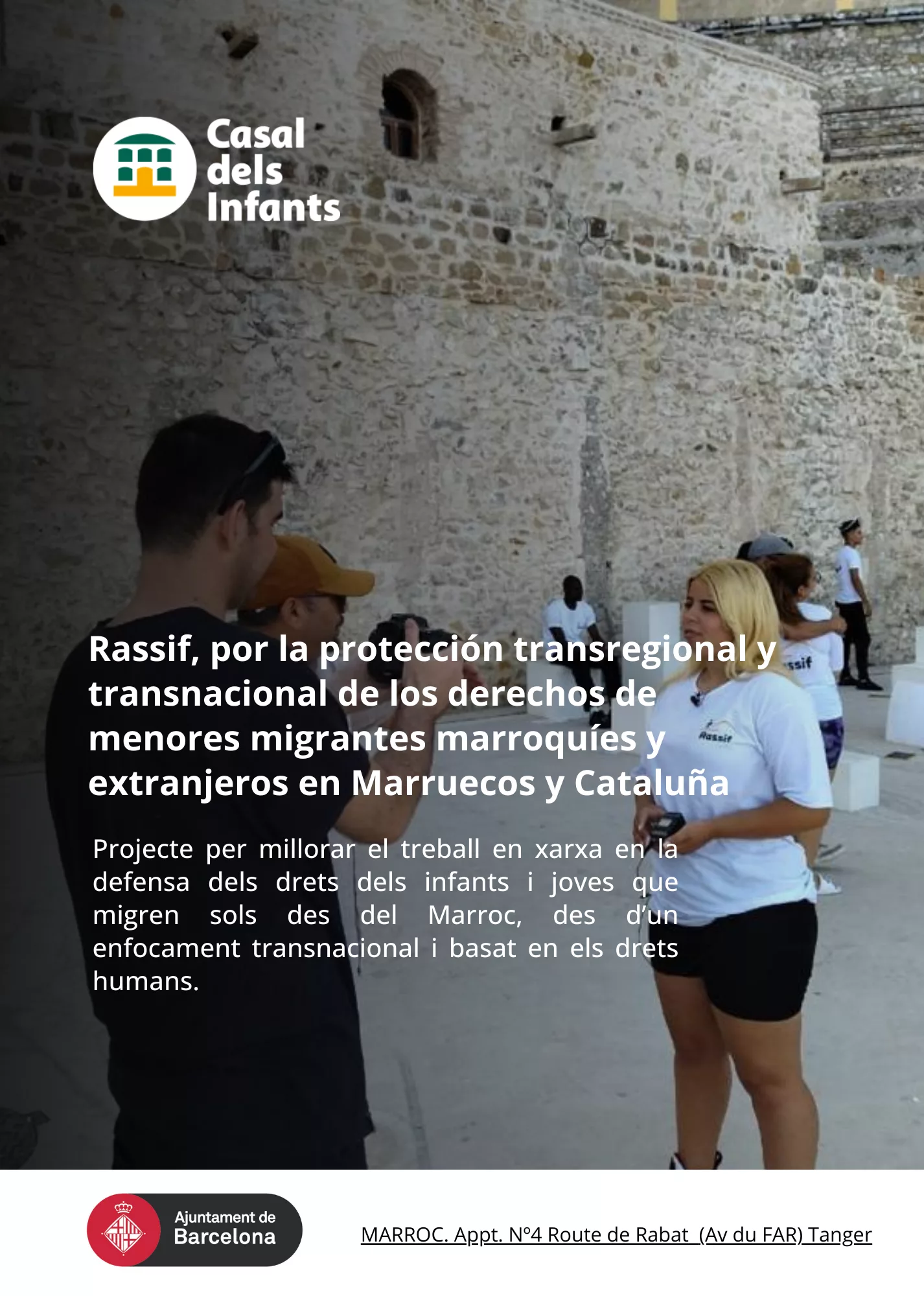 Al Casal dels Infants desenvolupem, dins la convocatòria de subvencions de Justícia Global i Cooperació Internacional 2024, el projecte ‘Rassif, por la protección transregional y transnacional de los derechos de menores migrantes marroquíes y extranjeros en Marruecos y Cataluña’, que té per objectiu millorar el treball en xarxa en la defensa dels drets dels infants i joves que migren sols des del Marroc, des d’un enfocament transnacional i basat en els drets humans.