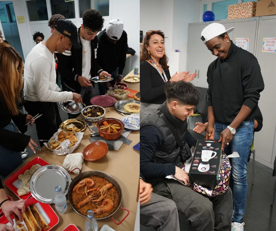 La Hayat, la Judit i la Wisale han portat al sopar bistela, un menjar marroquí fet amb pasta de full i farcit de formatge i pollastre. L’Amadou (19) ha portat chepa gen, arròs amb peix cuinat com ho fan al Senegal. En Nazar (19) ha cuinat dos plats típics d’Ucraïna: vareniki, el plat nacional del país, una pasta farcida de patates i bullida, i mlyntsi, com una massa enrotllada i farcida de formatge dolç.
