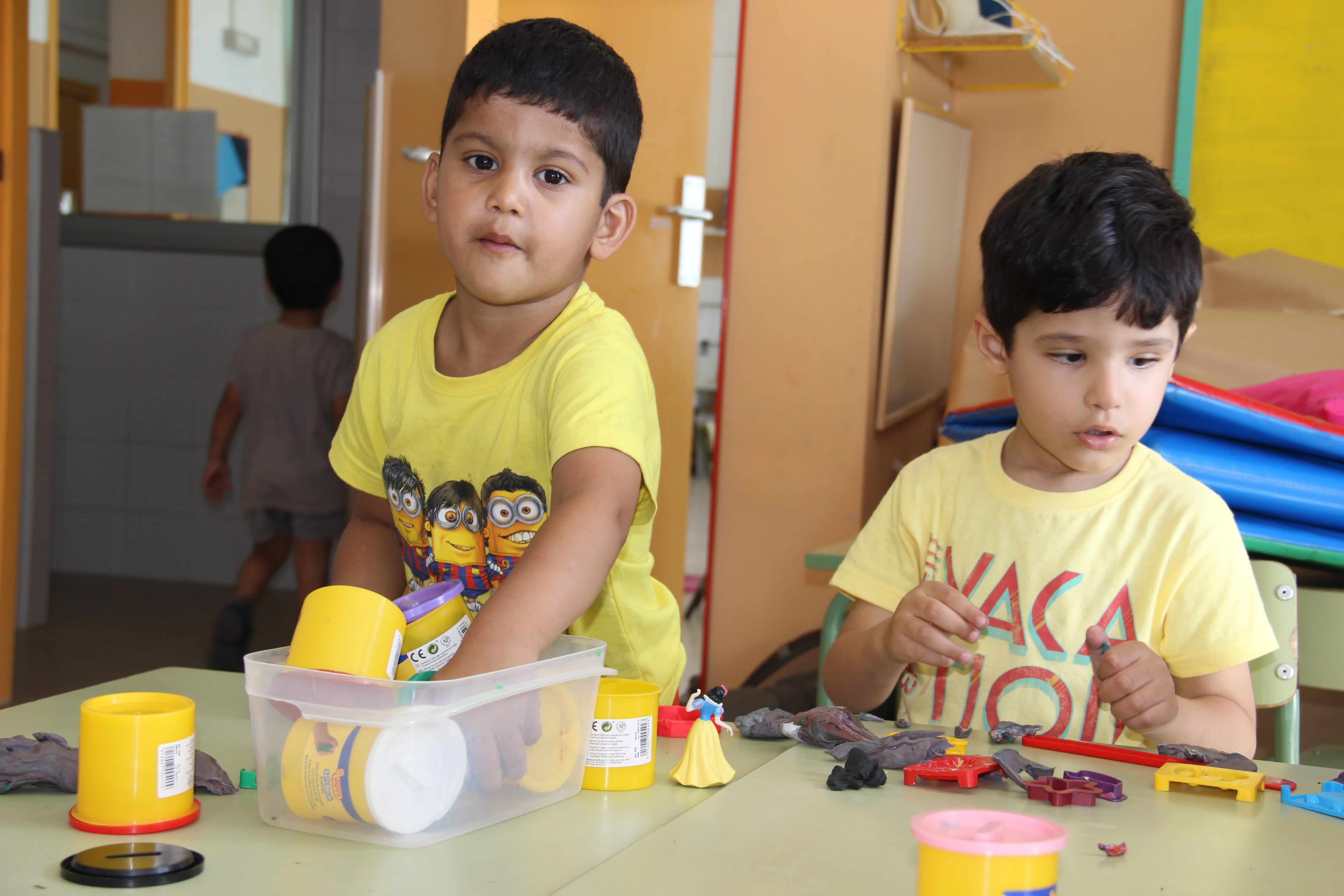 Mientras su madre hablaba, en la otra mesa Omar hacía una bola con plastilina gris y la aplastaba contra un molde para que saliera un león. Abdur Rahman se concentraba en una figura más bien abstracta, Gurman se ayudaba con un cuchillo de plástico y Aryan prefería hacer volar un helicóptero de juguete. Judit, atenta a que todos compartieran las cosas y jugaran sin conflicto, un valor importante para la socialización.