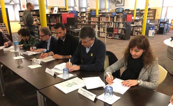 El alcalde de Salt, Jordi Viñas, el subdirector general de la Fundación Bancaria “la Caixa”, Mar Simón, y representantes de la Generalitat, el Consorci de Benestar Social Gironès-Salt y de las entidades sociales Fundació SER.GI, VIncle, Fundación Atenea, Caritas, Fundació Ramon Noguera y el Casal dels Infants firmaron el 11 de marzo el acta de renovación del Espacio de Relación Institucional (ERI), que incluye un acuerdo para reforzar el compromiso por la convivencia intercultural en Salt.
