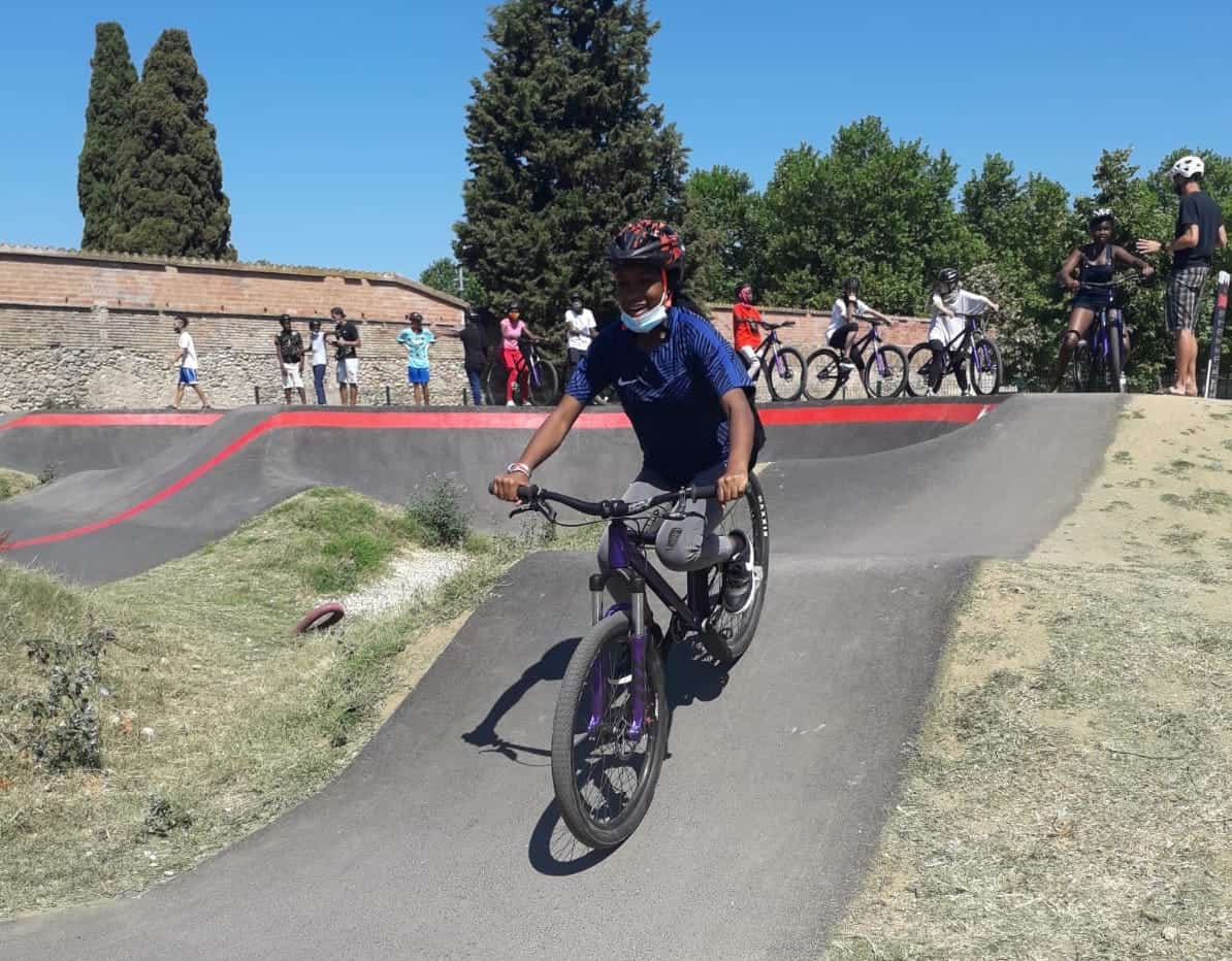 La iniciativa surge de la colaboración con Frodeno Fund, fundación creada por el atleta olímpico alemán de triatlón Jan Frodeno, instalado en Girona. Se trata de una propuesta que nos permitirá complementar el apoyo en los estudios con la actividad deportiva en bicicleta, un deporte tradicionalmente masculinizado. El rato de deporte tendrá lugar en el pump track, un circuito de saltos y desniveles ligeros que permiten que la bici se mueva por inercia sin tener que pedalear.