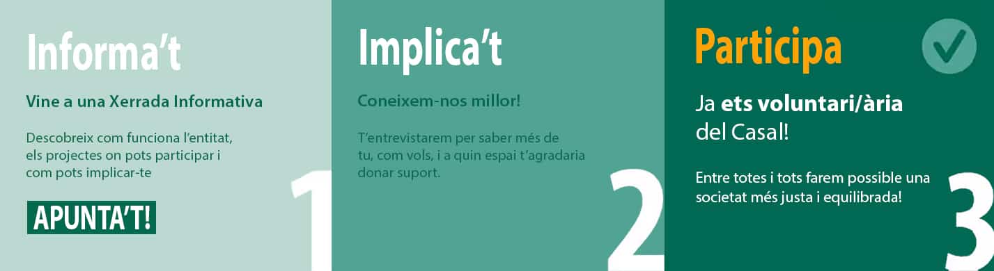 Viu el voluntariat al Casal, per construir una societat més justa i garantir els drets dels qui es troben més obstacles a la vida.