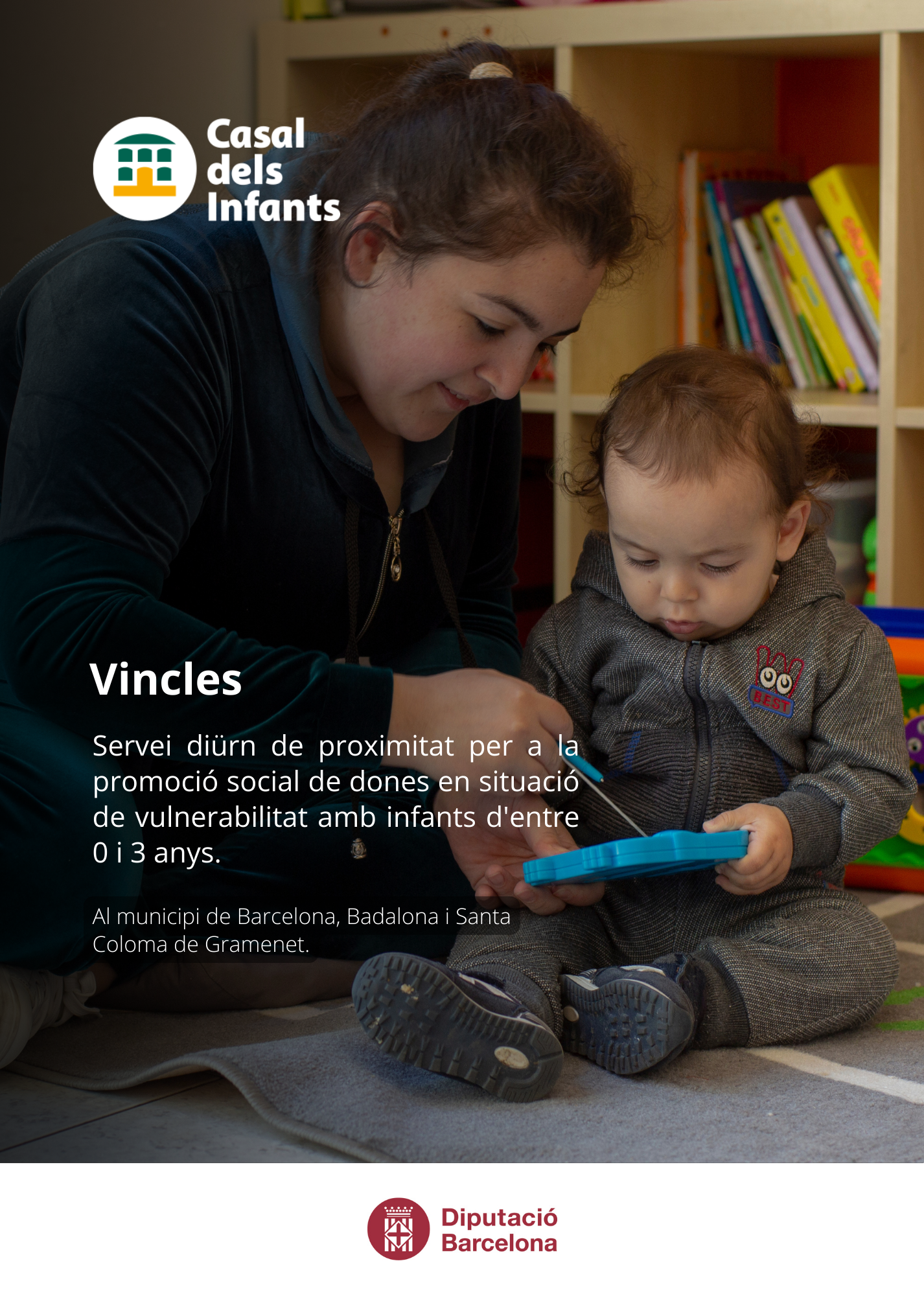 Al Casal dels Infants desenvolupem, dins la convocatòria de subvencions de l’Àrea de Feminismes i Igualtat 2024, el projecte ‘Vincles’, que té per objectiu disminuir les situacions de vulnerabilitat social de les dones i dels seus fills/es menors de 3 anys en situacions en què la maternitat pot potenciar els processos d’exclusió i/o risc social.